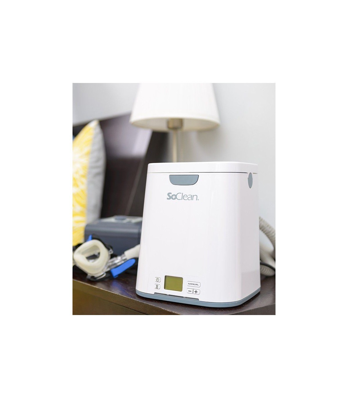 SoClean est le rivolutionnaire dispositif pour l'assainissement de la PPc. Sûre, automotisé et  facile à utiliser, SoClean ne nécessite aucun démontage des pièces de la PPC. Il utilise ozone actif pour désinfecter en manière efficace le masque, le circuit et l'himidificateur de la PPC.
