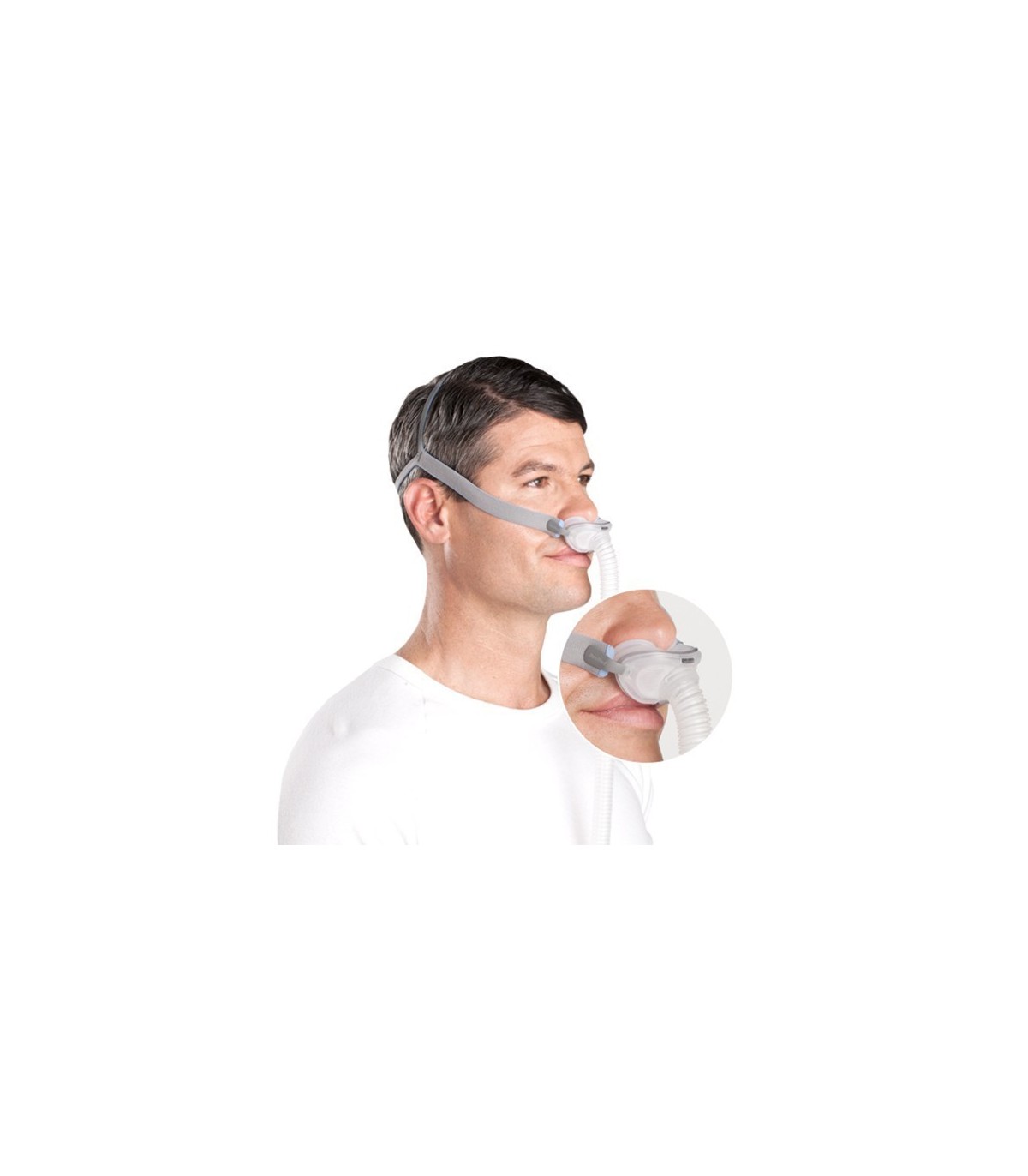 Ce masque a été conçu spécifiquement pour ceux qui veulent avoir aussi peu de contacts que possible sur la peau. Ce contact peut raccourcir le soleil olivette nasal, qui sont insérés dans les narines pour quelques millimètres et all'headgear, déjà réduit autant que possible la taille.